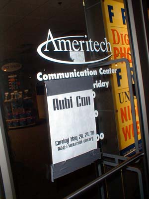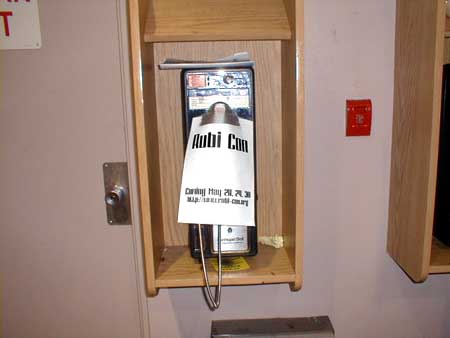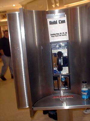 As I've said before, Ameritech doesn't really like Rubi Con too much, and as always, this is probably the reason why. Notice the blurry person walking behind the phone in the extreme left side the picture. That, for some odd reason, is Ron. I don't know how he got over there, or what he was doing, but there he is... |