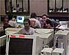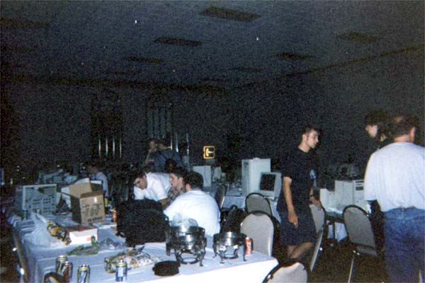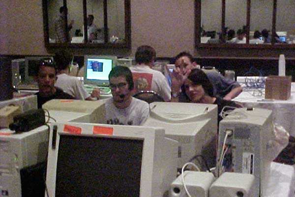 This picture was just too eerie to leave out. Here we see more computer geeks bathed in the subtle blue glow of LCD monitors as they tinker away at something unwholesome. |