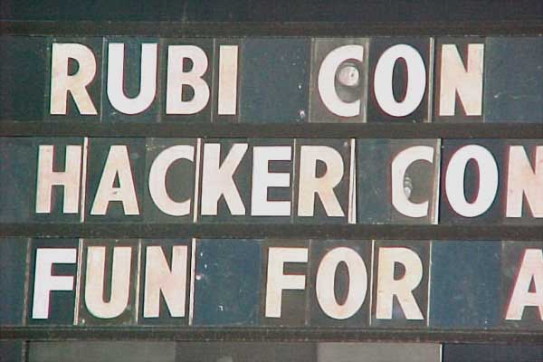 Favorite quote from Rubi Con 1999: "Look lady, there's lots of 15-year-old kids asleep in people's rooms." Said by a certain Evil to one of the above-mentioned parents. I think he was trying to help. |