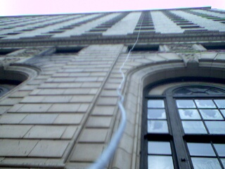 Just a glimpse of what the cat5 looked like running down those 14 floors (from room 1425)